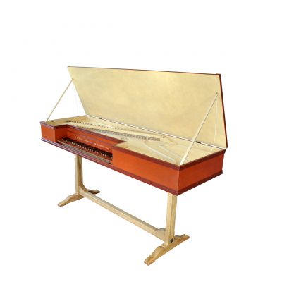 tónový rozsah C – f3, transpozice 415/440/465 Hz, 54+2 znělých tónů, rejstříky 1×8“, rozměry 163x54x19 cm, korpus lípa, dno smrk, rezonanční deska smrk Valle di Fiemme, klaviatura 54 tónů – celé tóny švestkový potah, půltóny švestkové, potažené ebenem, pergamenová rozeta, dřevěné trsací sloupky s delrinovými plektry, ostrunění železo a žlutá mosaz